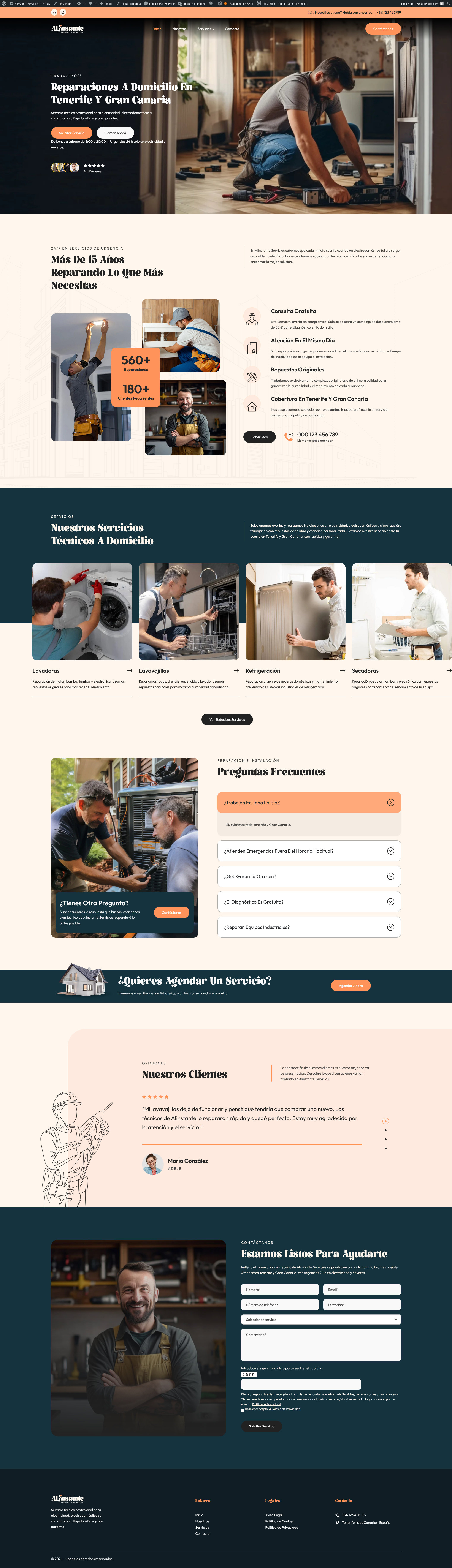 En Labrender desarrollamos la nueva página web corporativa de Alinstante Servicios Canarias, empresa especializada en reparaciones técnicas de electrodomésticos, electricidad y climatización con cobertura en Tenerife y Gran Canaria.