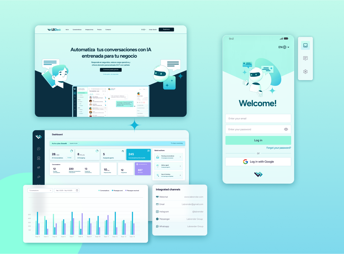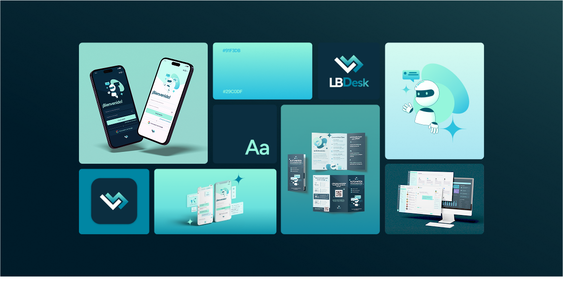 LBDesk es uno de los desarrollos insignia de Labrender, un producto SaaS que combina un sistema de soporte multicanal con un agente de inteligencia artificial propio, LiaDesk. Para acompañar la creación de la plataforma, era imprescindible dotar al producto de una identidad gráfica sólida y distintiva, capaz de comunicar innovación tecnológica y, al mismo tiempo, cercanía y confianza hacia los usuarios.