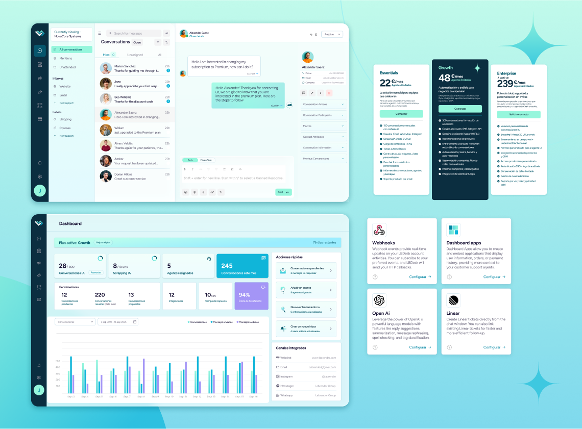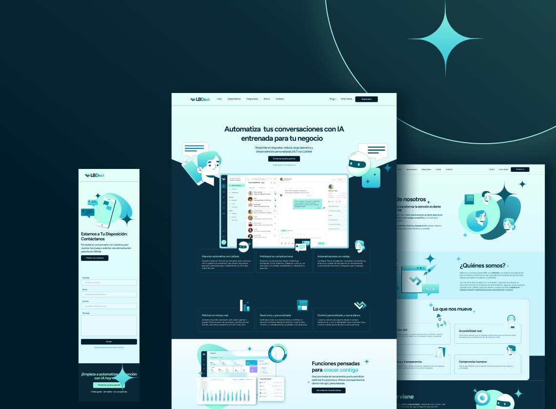 LBDesk es el producto SaaS insignia de Labrender, desarrollado para convertirse en una solución integral de soporte multicanal potenciado por inteligencia artificial a través de su agente LiaDesk. Para que la experiencia de uso fuese tan poderosa como la tecnología que había detrás, nuestro equipo trabajó en un diseño UI/UX completo que abarcó la aplicación web, la app móvil y el sitio comercial del producto.